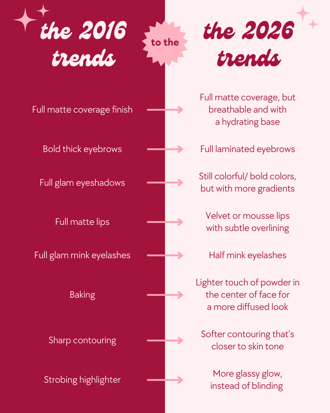 Driven by the need for nostalgia and the cyclical nature of trends, this is a reaction to the clean girl aesthetic and the current state of the world. The structured ritual process of creating a full glam look provides a sense of stability and control- a feeling that we are all craving at the moment. With everything crazy happening everyday, we are looking for anything that will help soothe our nervous system and lower our cortisol levels. So back returns 2016.