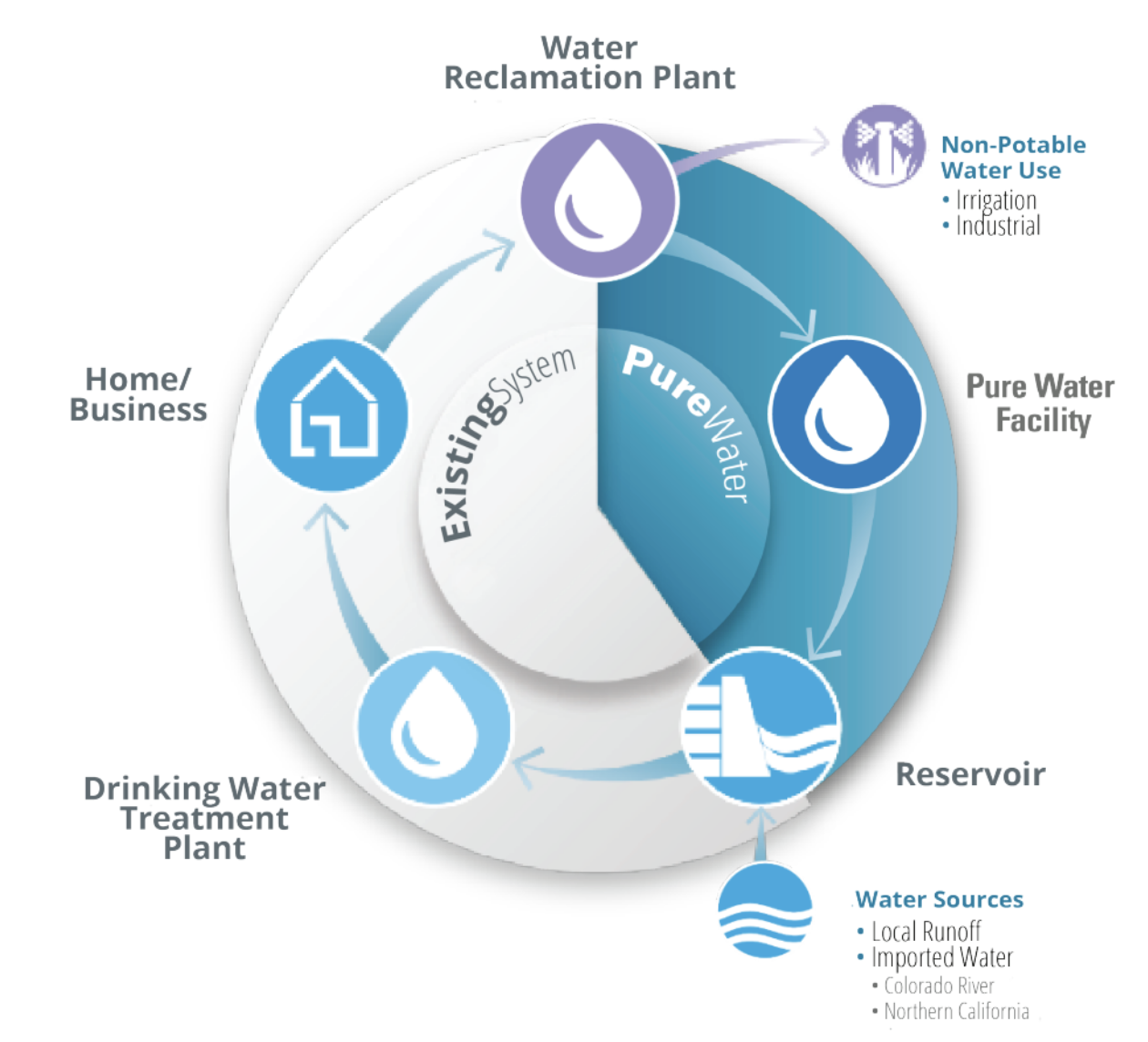 Currently, San Diego relies on importing 85% of its water supply from the Colorado River and Northern California Bay Delta. Only 8% of home and business wastewater is recycled; the remainder is treated and discharged into the ocean. Pure Water San Diego is a two-phased, multi-year program that aims to provide nearly half of San Diego’s water supply locally by 2035.