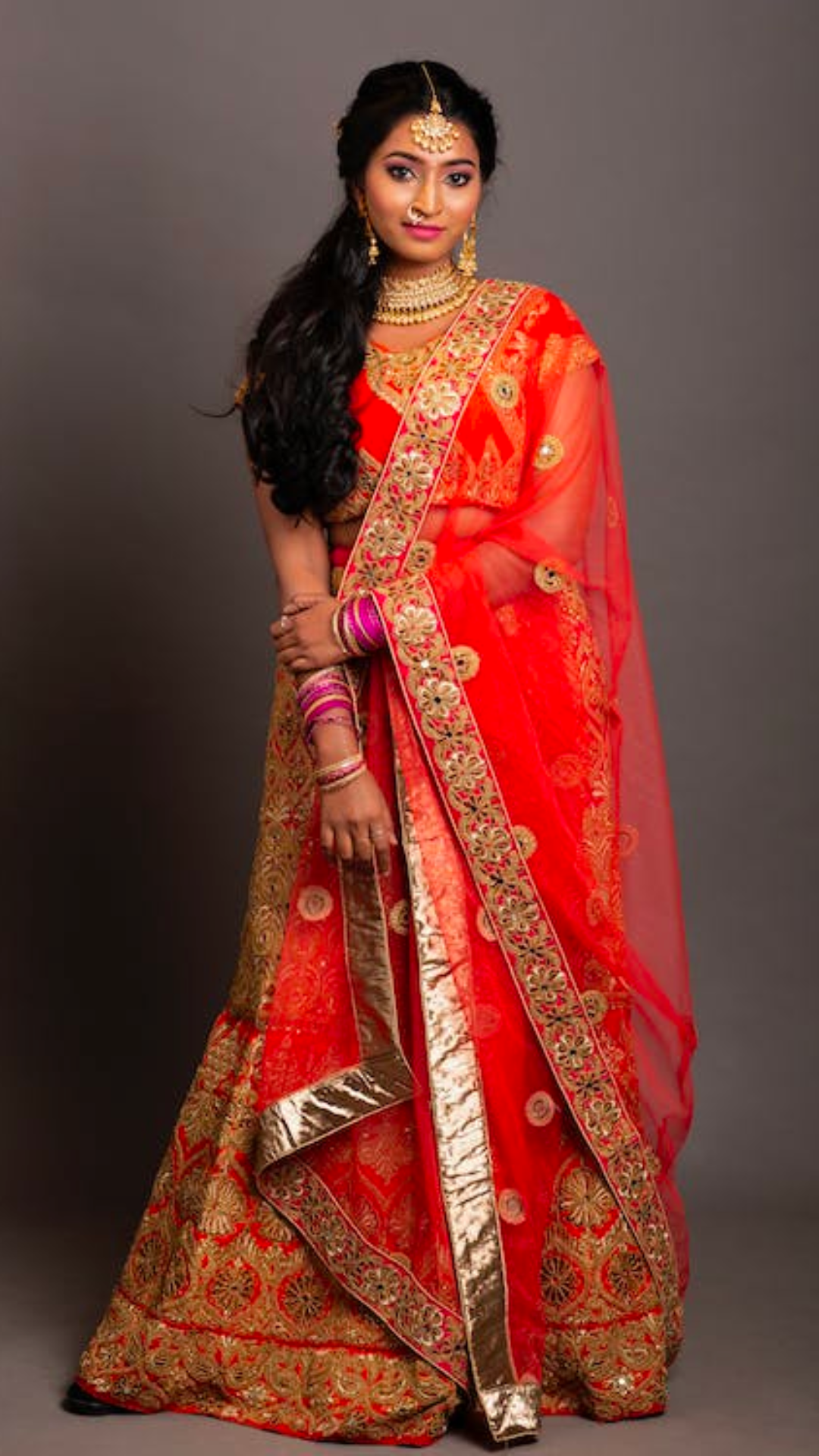 The Sari, a garment that wraps around the body, can be seen in areas of South Asia such as India, Bangladesh, and Sri Lanka. This outfit is versatile and comes in different colors and patterns with intricate embellishments.